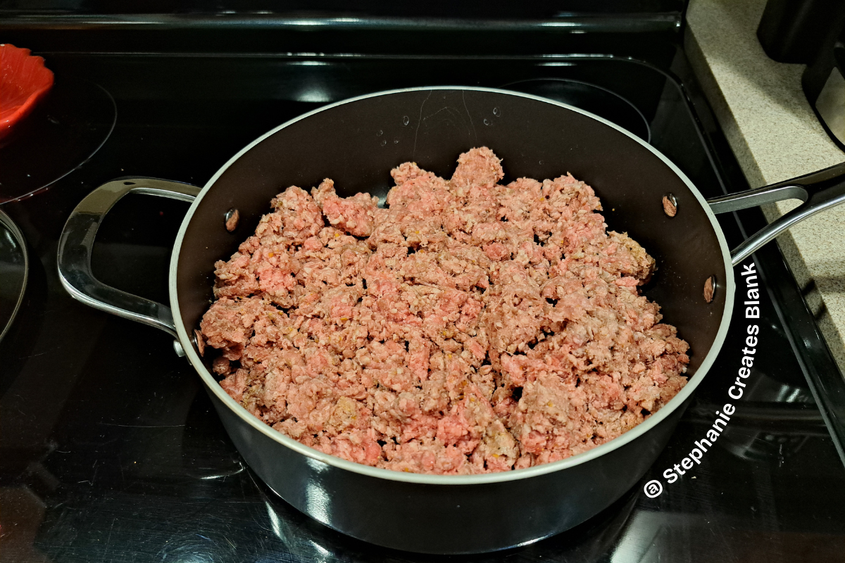 Per the original recipe I could make my ground beef into patties. I thought it would take to long. The only thing I needed to do was flavor it as I would any hamburger. So, I browned the ground beef.